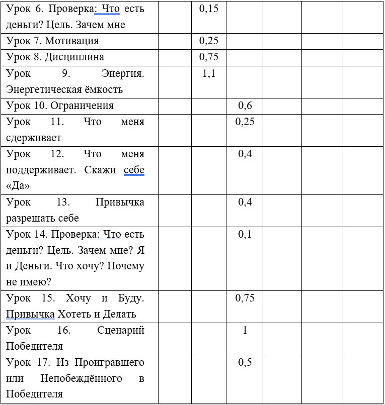 - навыком формирования новых убеждений, поддерживающих финансовый рост и личную эффективность;