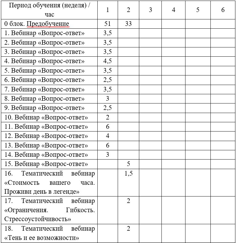 Срок реализации: 6 недель.